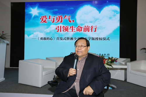 盲文社社長張偉則表示,《勇敢的心》是一部非常美的書,不僅內(nèi)容溫馨感人,更傳遞了溫暖和正能量。他提到,當(dāng)前盲人文化產(chǎn)品的生產(chǎn)還很難滿足需求,與湖南少兒出版社合作推出大字版和有聲讀物,可以為視力殘疾的孩子提供優(yōu)質(zhì)的閱讀資源。他認(rèn)為這樣的合作是充滿了善意、愛心和溫情的。他還對(duì)我社給予的支持表示感謝。